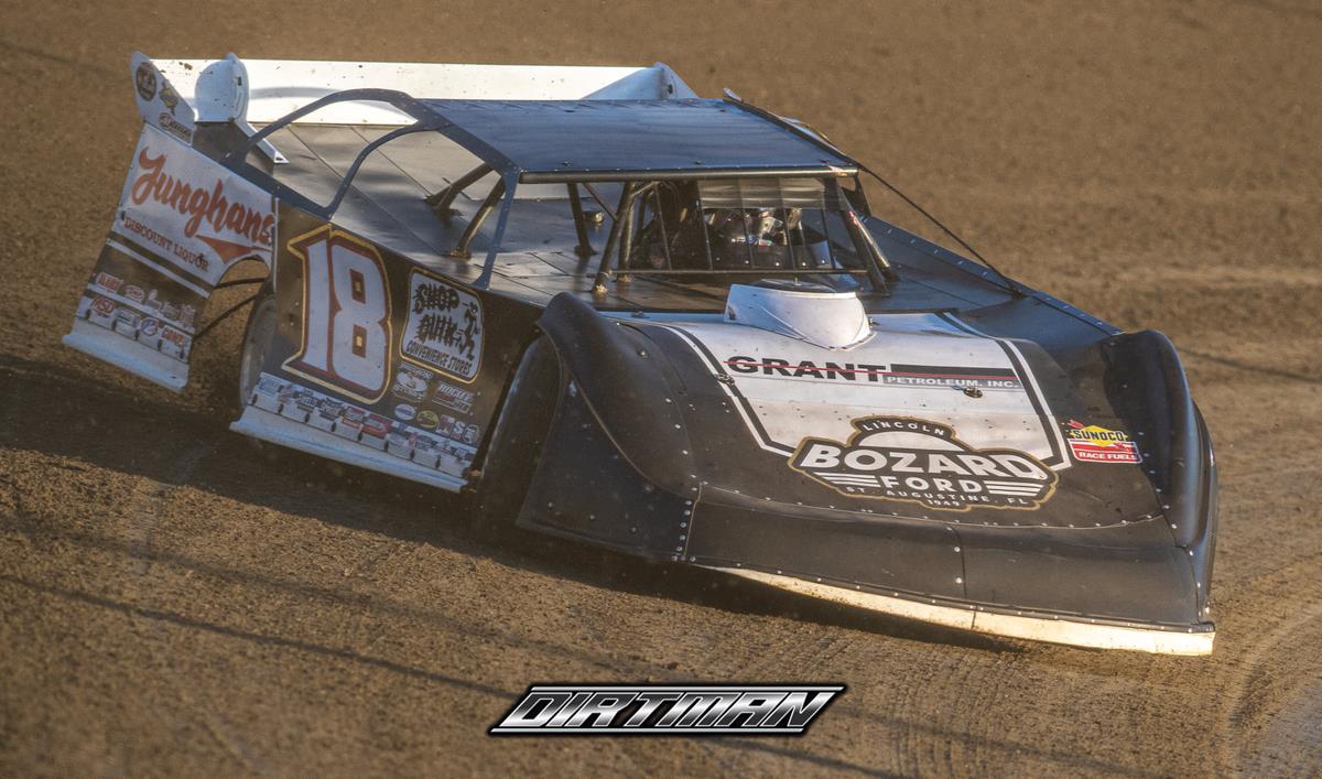 Entering his lone event for the week, Chase Junghans invaded I-80 Speedway (Greenwood, Neb.) on Tuesday afternoon for the Tuesday Tickler. In a field of 34 Lucas Oil Midwest LateModel Racing Association (MLRA) entries, Junghans clocked in fourth fastest in his qualifying group before placing second in his heat behind Tony Jackson Jr. Starting the $5,000-to-win A-Main in eighth, Chase advanced forward six spots in the 35-lapper to register a runner-up finish, trailing Tony Jackson Jr. to the checkers. Ashton Winger, Mason Oberkramer, and Billy Moyer completed the Top-5 finishers. (Rich LaBrier photo).