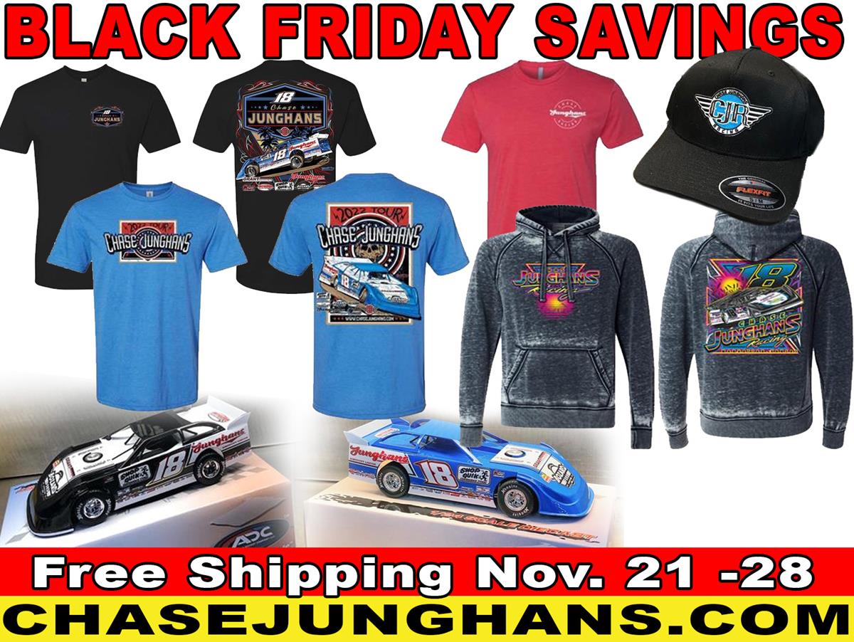 Chase Junghans Racing is celebrating a week of Black Friday Savings starting today and running through Monday, November 28.