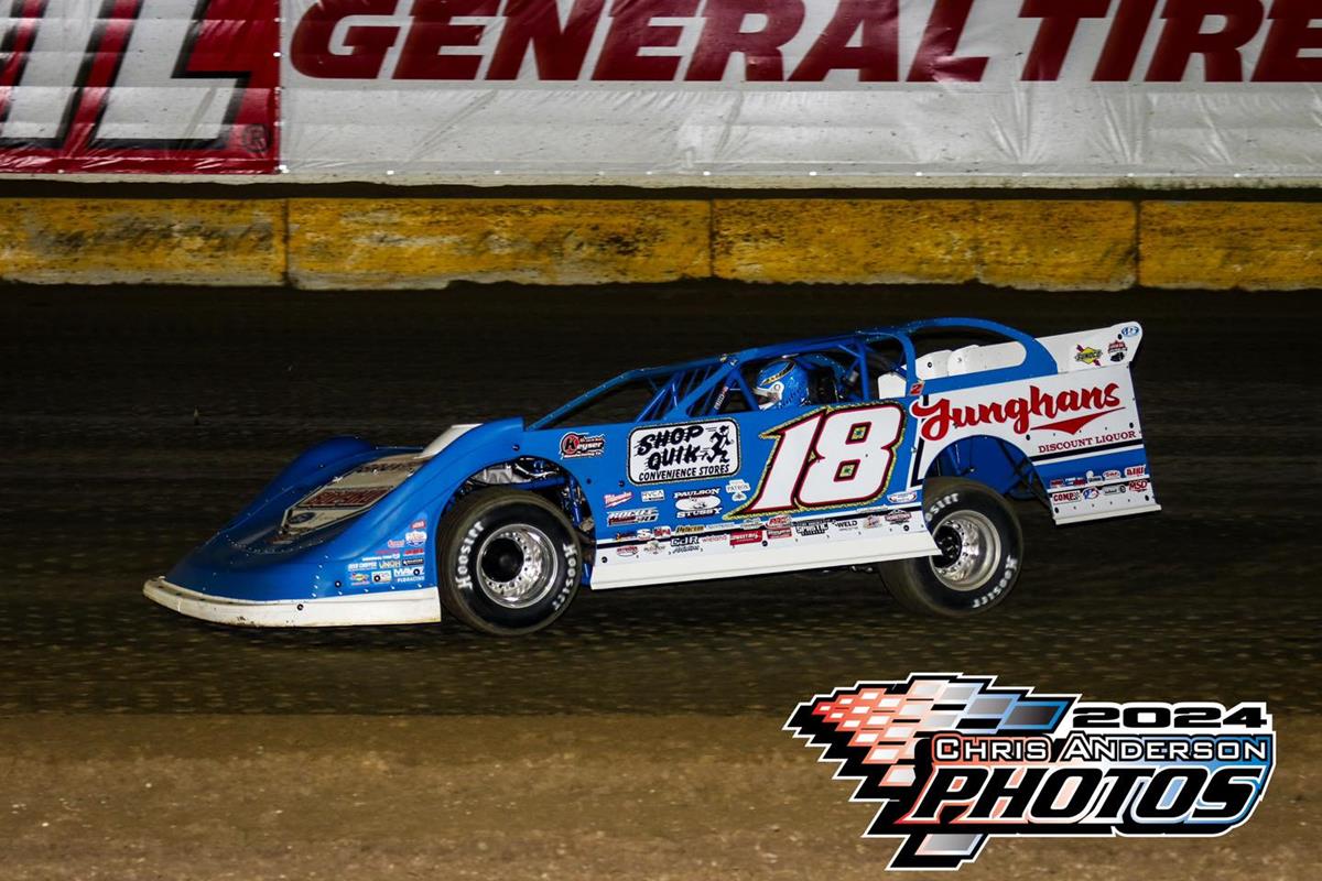 Back at the half-mile oval on Saturday, Chase’s ninth-place showing in his heat relegated him into a B-Main for one final shot at the $15,000-to-win A-Main. Taking only the top-two, Junghans’ night was over with a sixth-place outing.